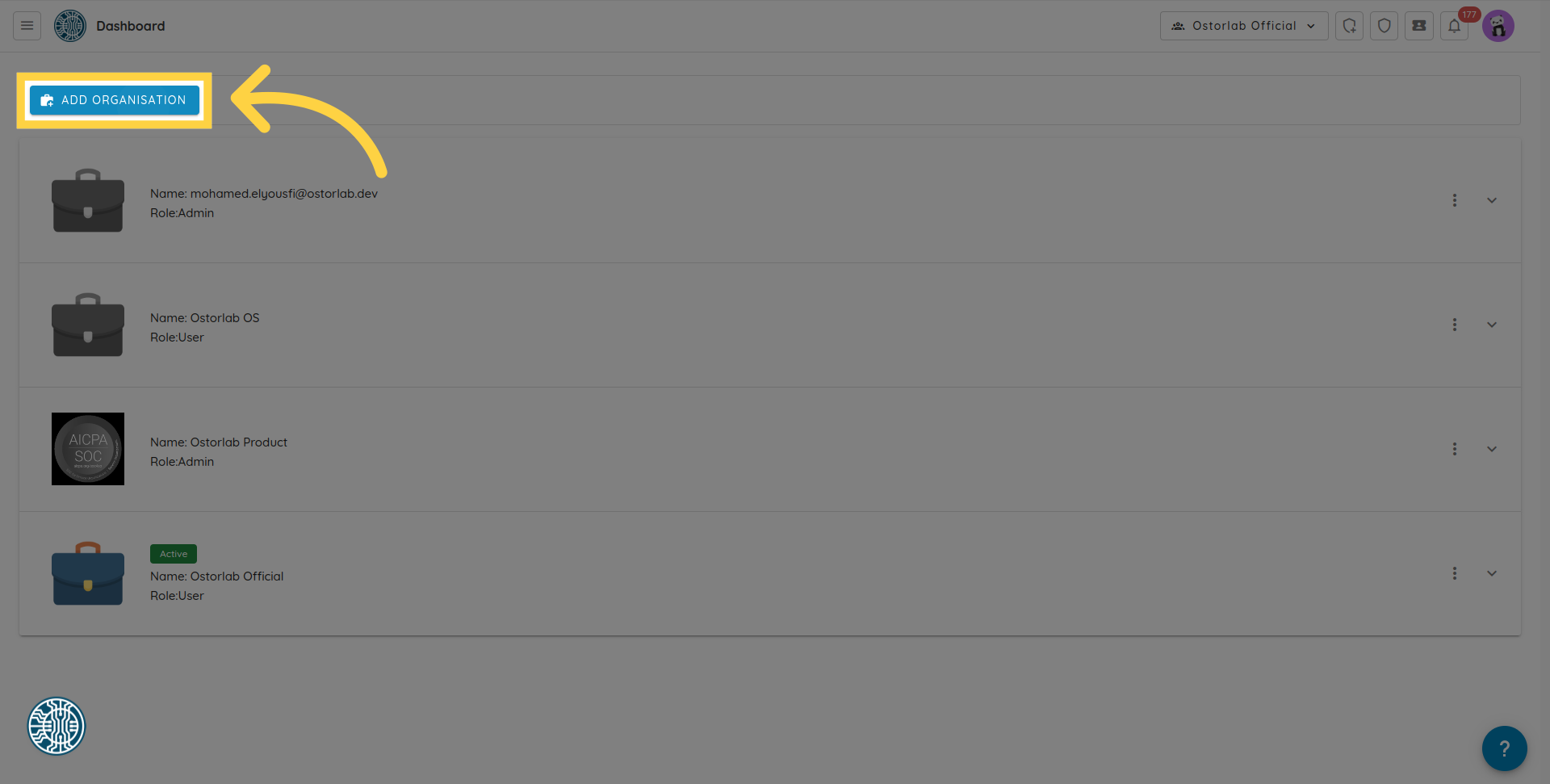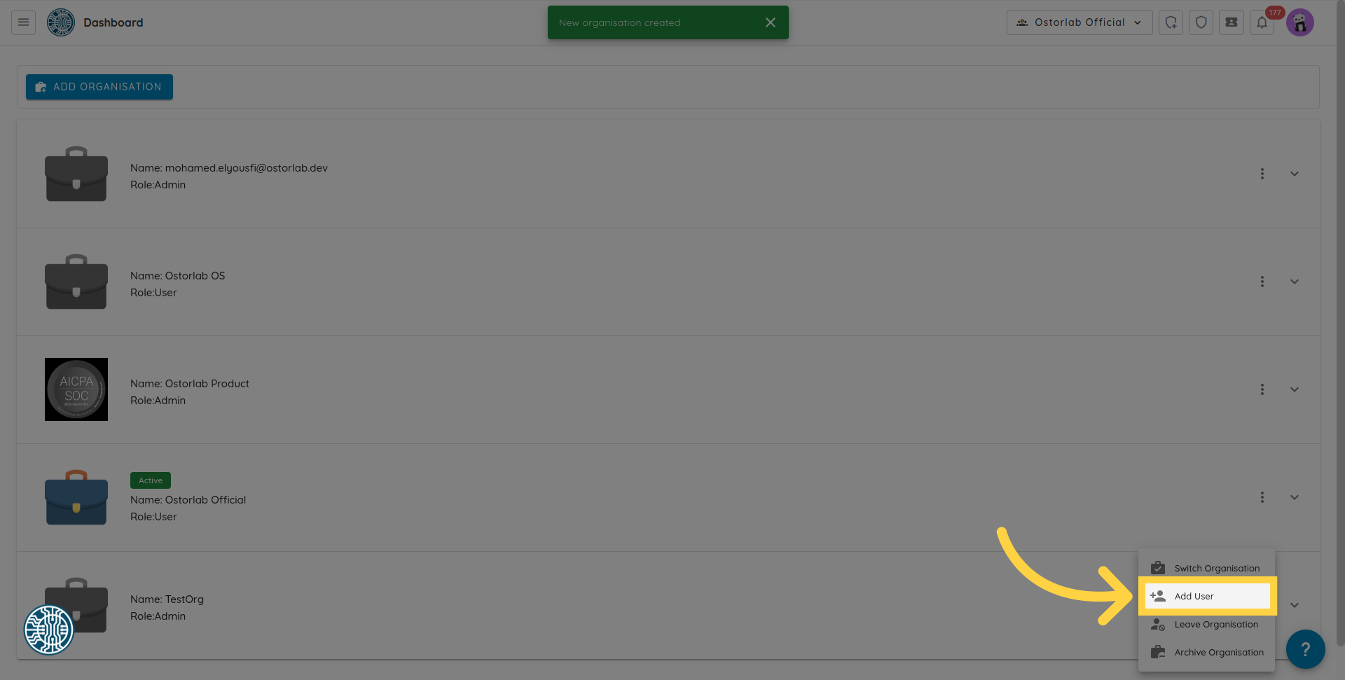 4. Click "Add Organisation"
